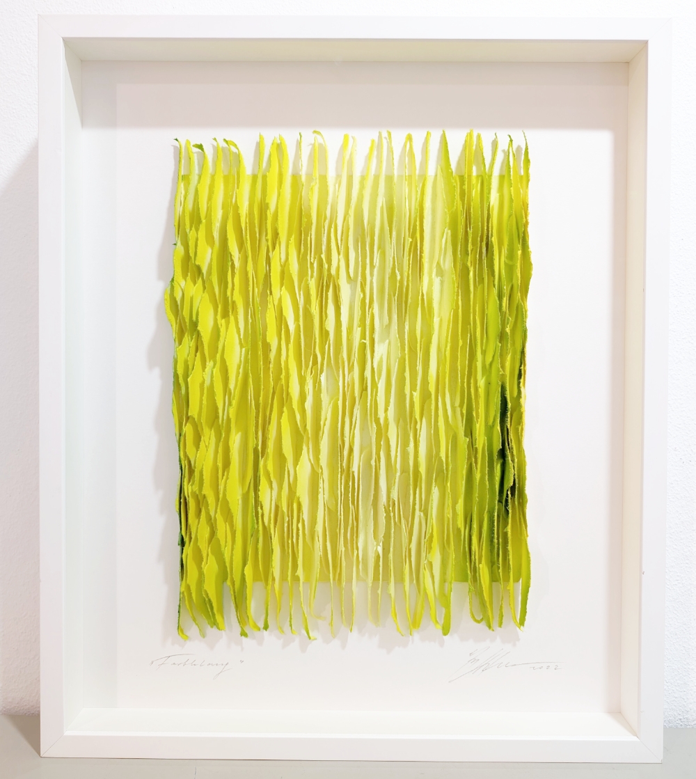 Gabriele Mierzwa "Farbklang" (gelb-grün) 60x50 - Original 3D Papierobjekt
